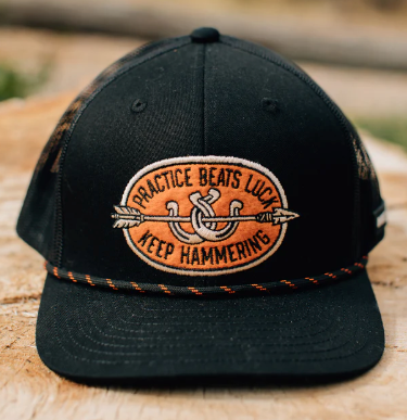 Practice, practice, practice! Hours and hours behind the bow will be what makes the difference between a punched tag and tag soup. Our guy Cam Hanes lives that lifestyle. Every single day he lift, runs, and SHOOTS. It's part of his regimen and this hat brings to life that "practice beats luck" mentality.