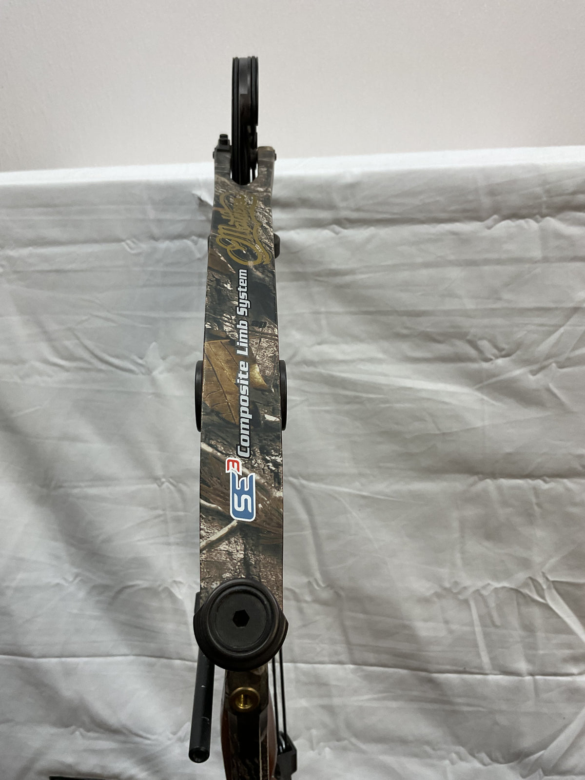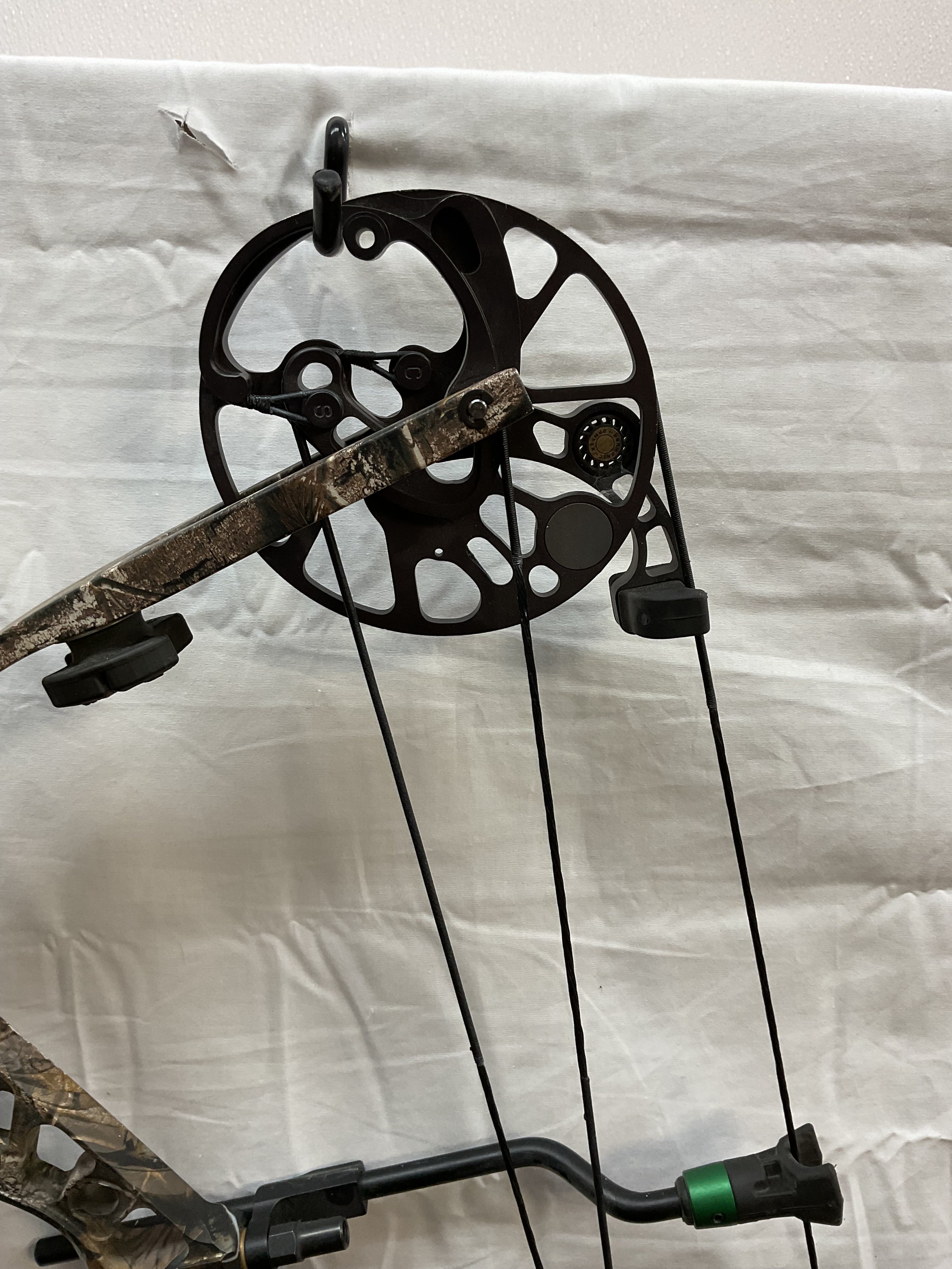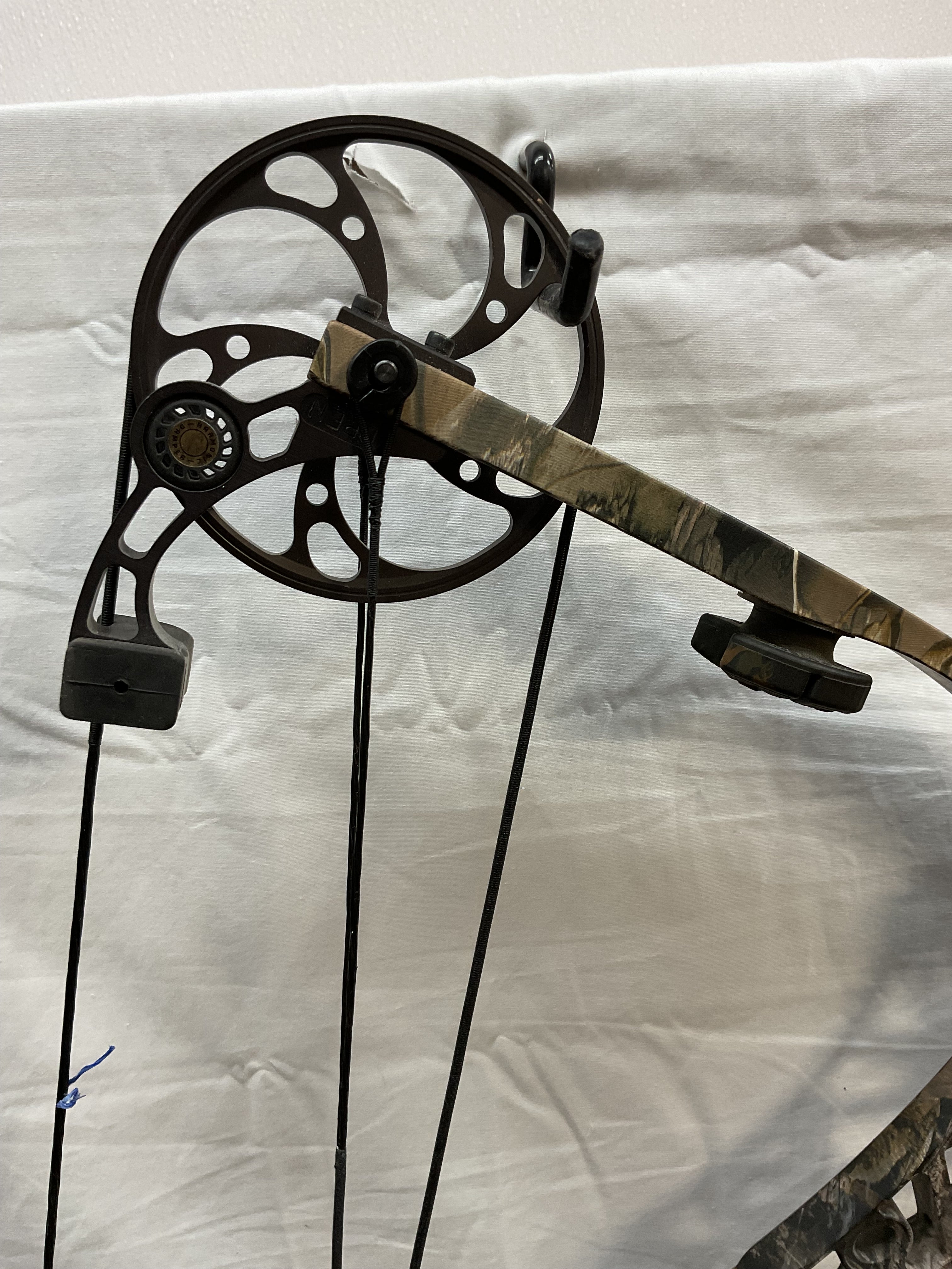 This bow is in Great condition. Has normal wear marks around grip. 100% cosmetically. Bow has brand new Gas bowstrings installed and timed.