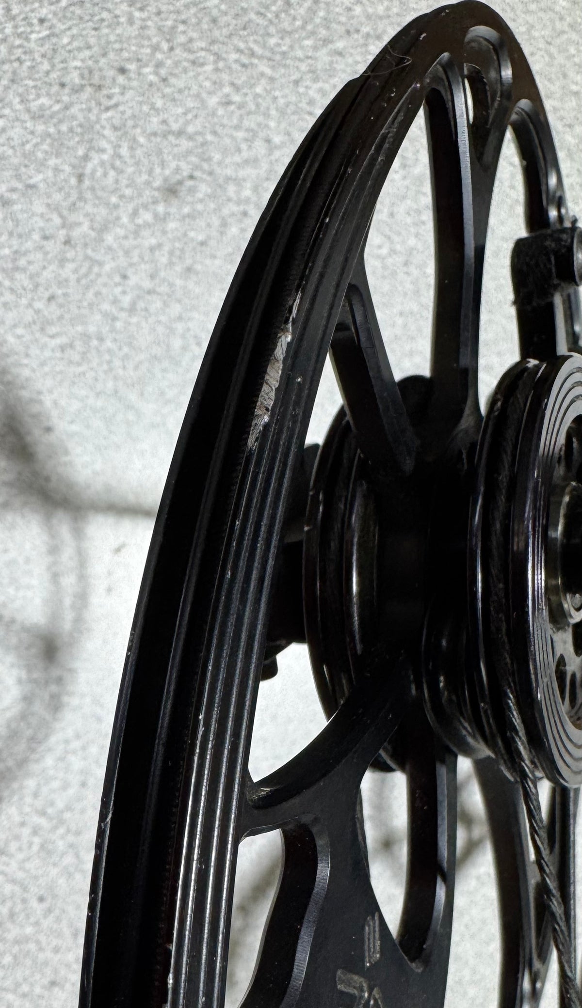 This bow has seen some hard core time in the field. It shows signs of wear on the riser, limbs, cams, and pockets. This does have new GAS black strings installed.