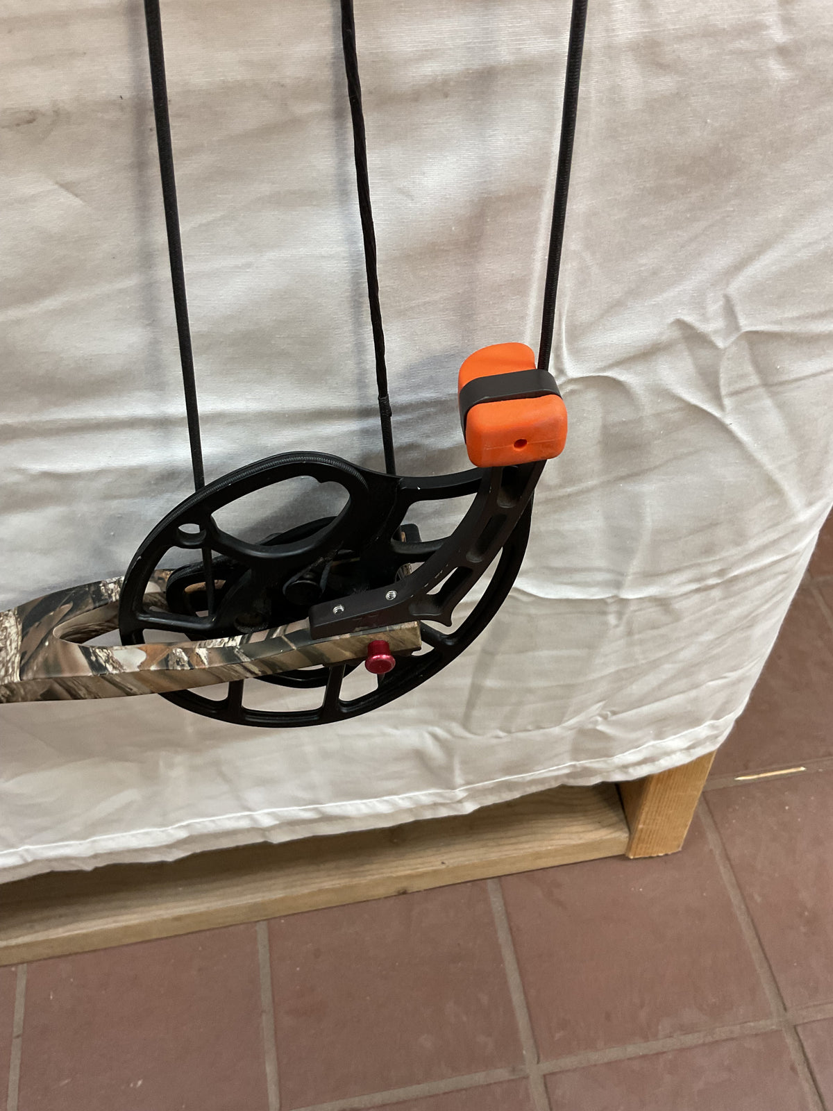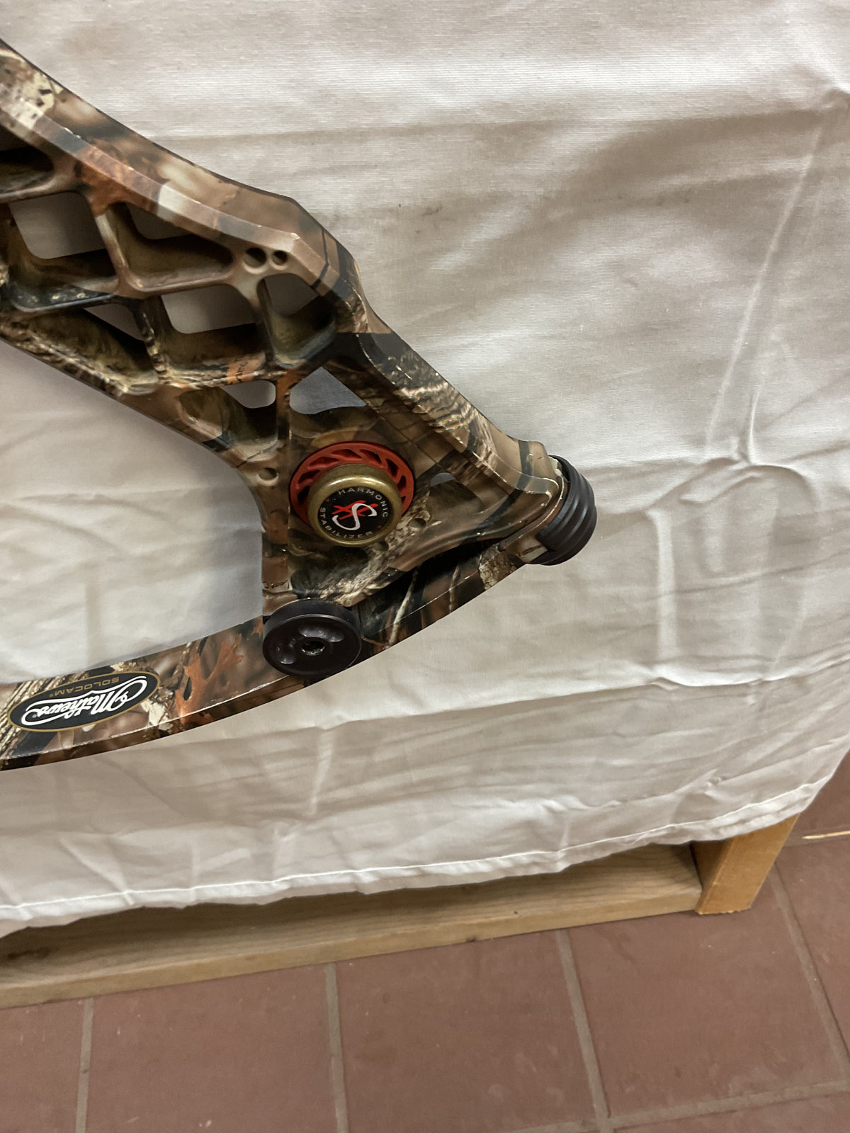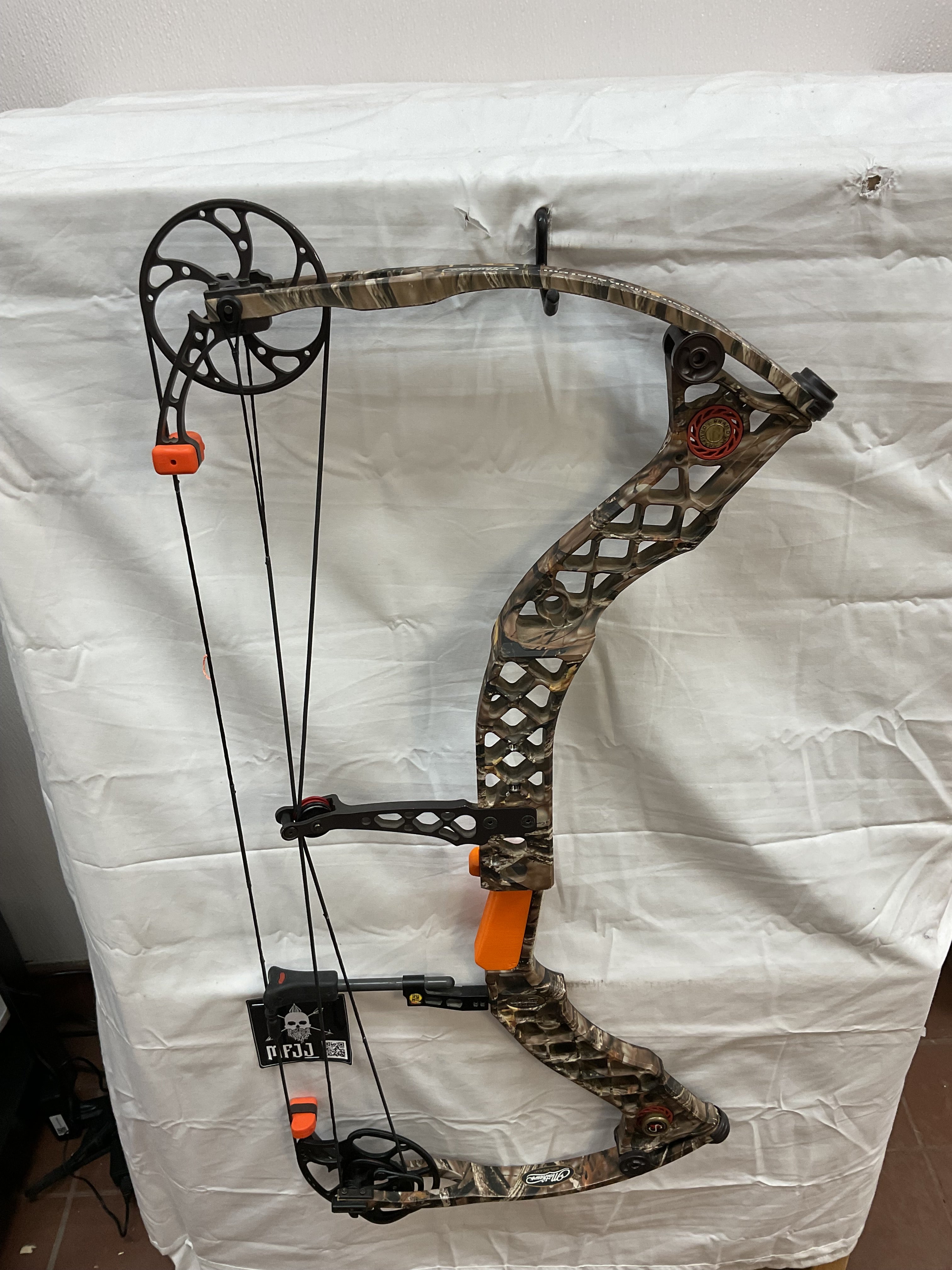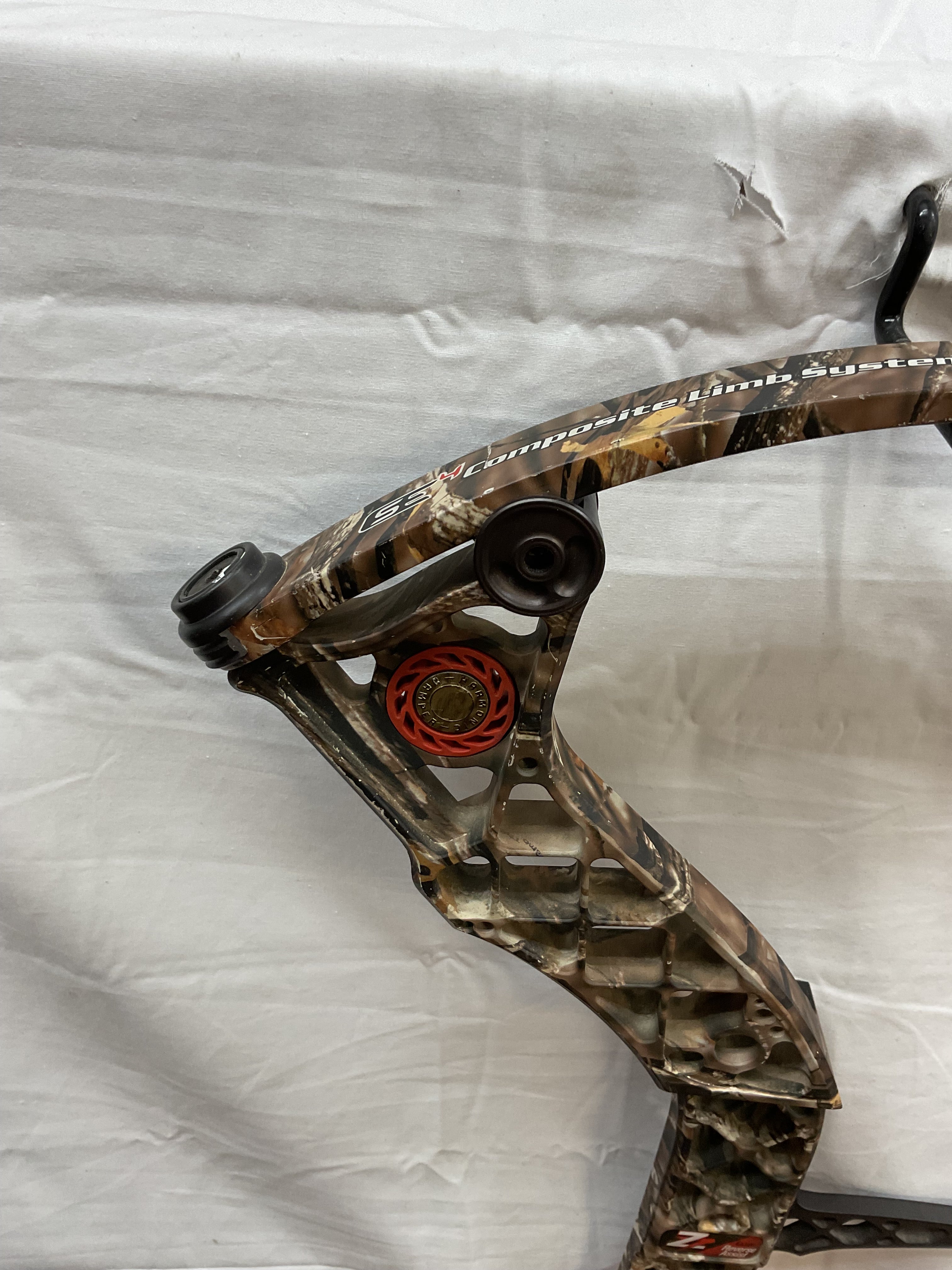 This bow is in Good condition. Has paint fading on grip along with paint chips on riser and cams. Bow has brand new Gas bowstrings installed and timed.
