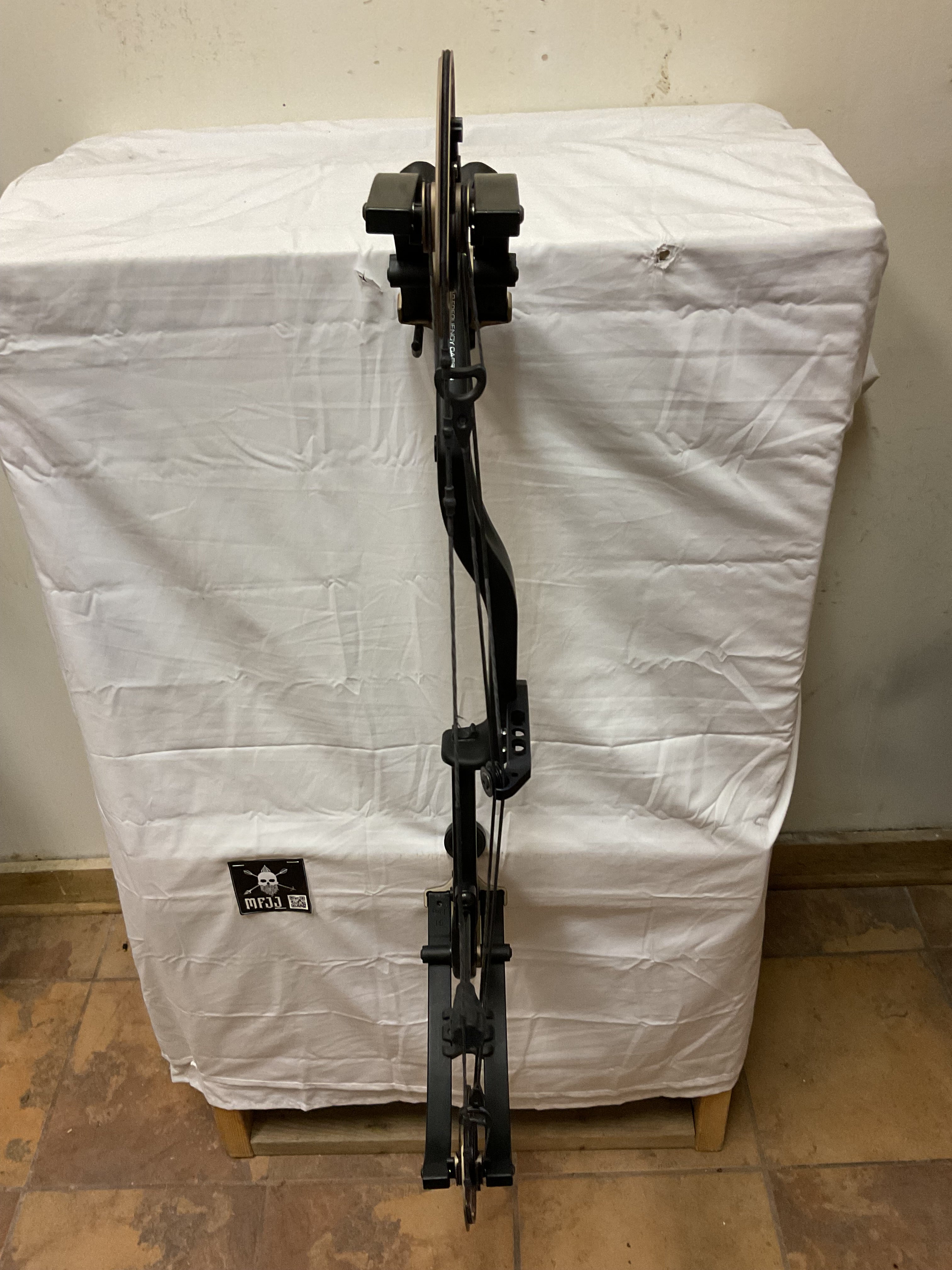 This bow came to us in great condition with new factory strings installed. Only flaw is glue residue on the riser.