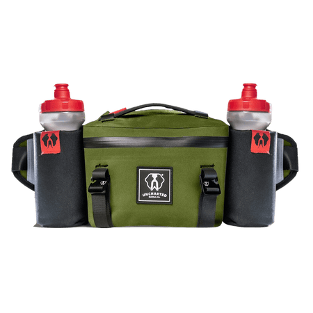 Both hip straps feature MOLLE straps, allowing both water bottle holders to detach, leaving room for alternative add ons - bear spray, fishing net, holster, etc. Inside the pack is a slim pocket fitted perfectly for our Triage Kit - covering your first aid and gear repair essentials (sold separately).