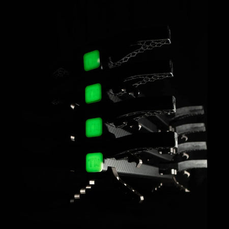 Top and bottom glow-in-the-dark rubber end caps make it easy to find your footing in low-light conditions—without fumbling for your headlamp. -