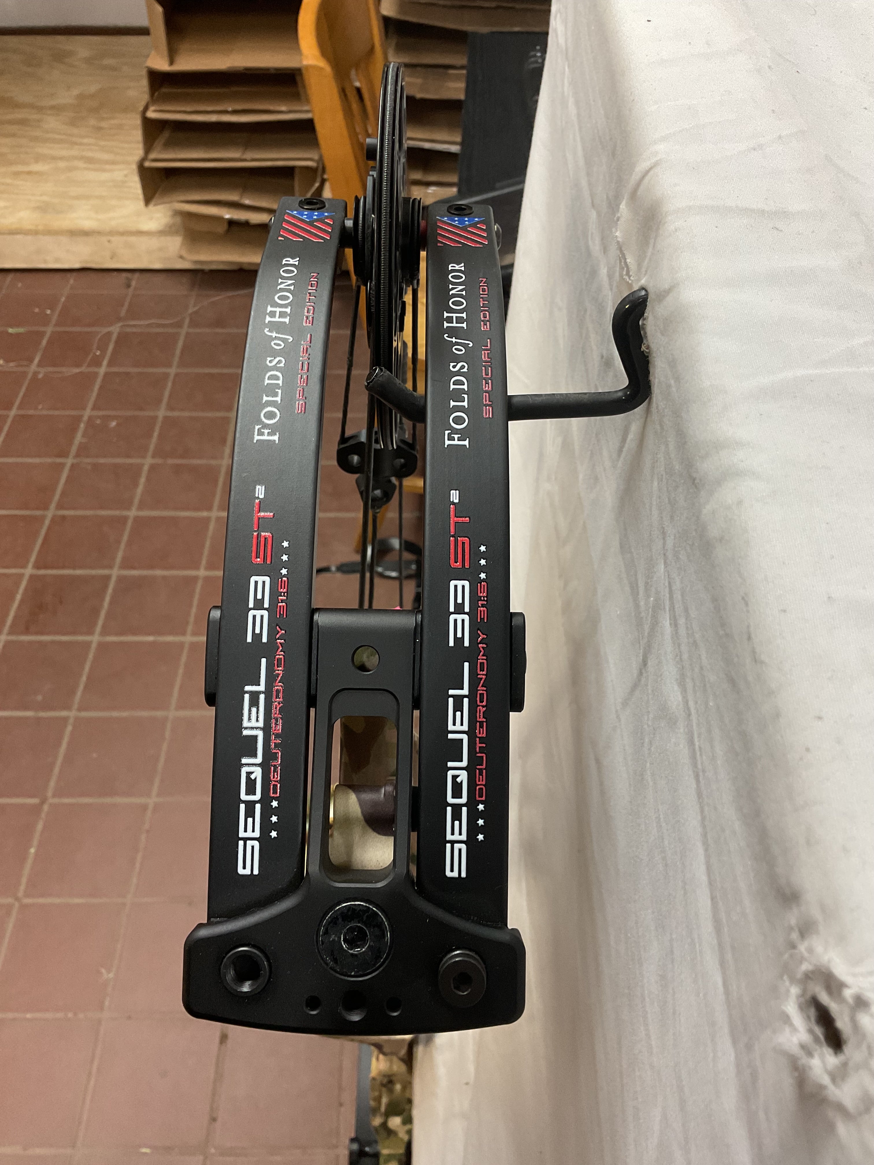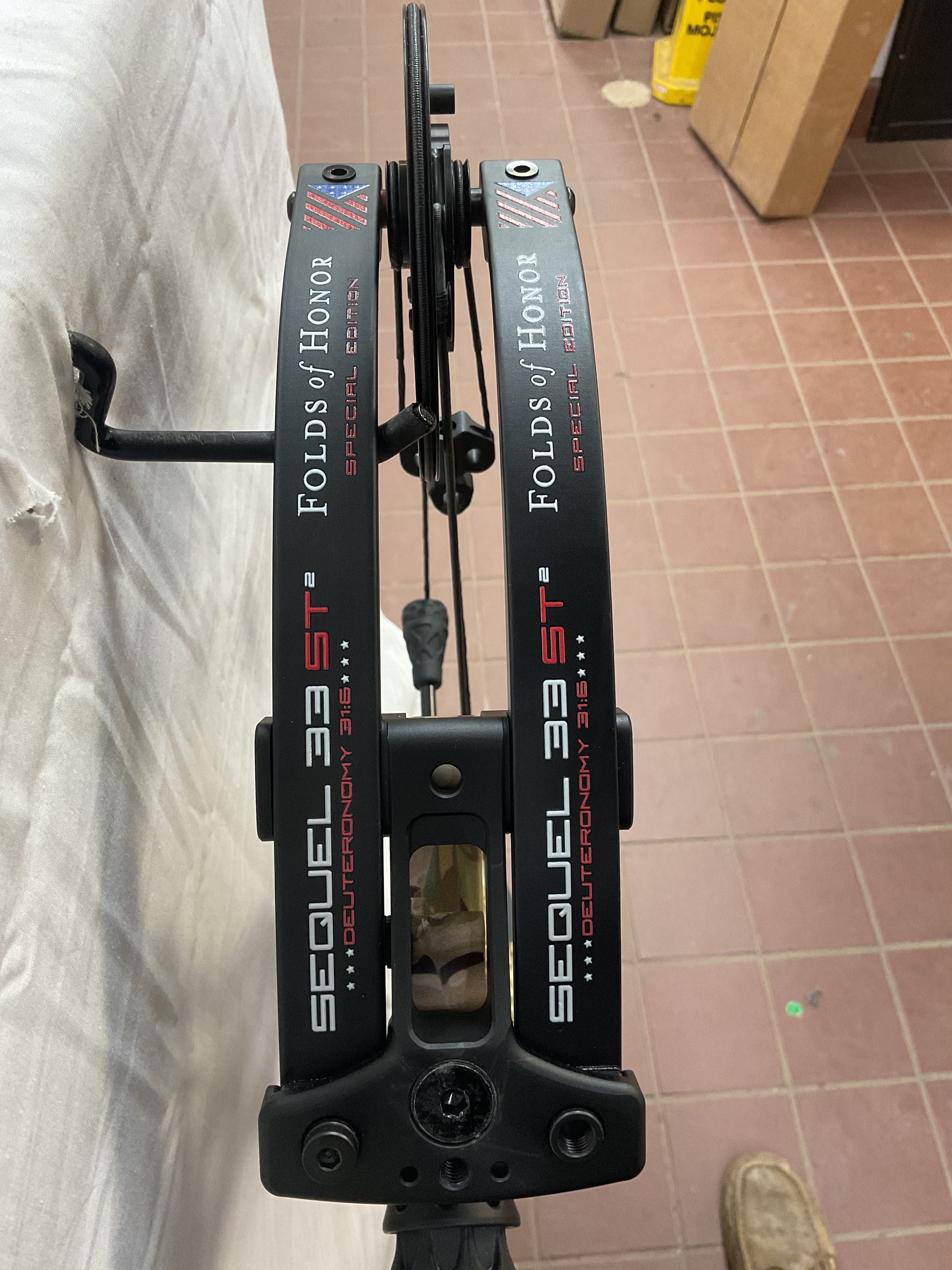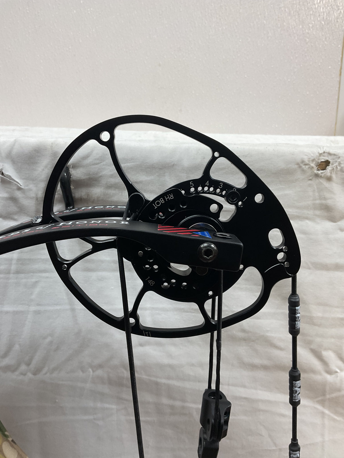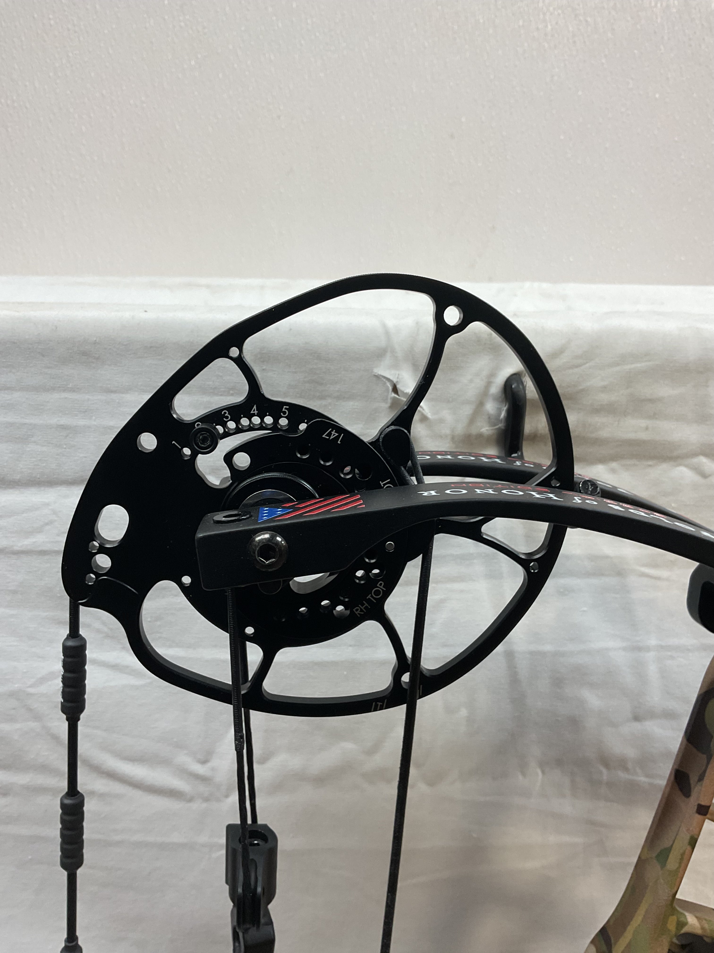 This bow is in Excellent condition. This bow is the Folds Of Honor Edition. Has brand new GAS strings installed by our techs.