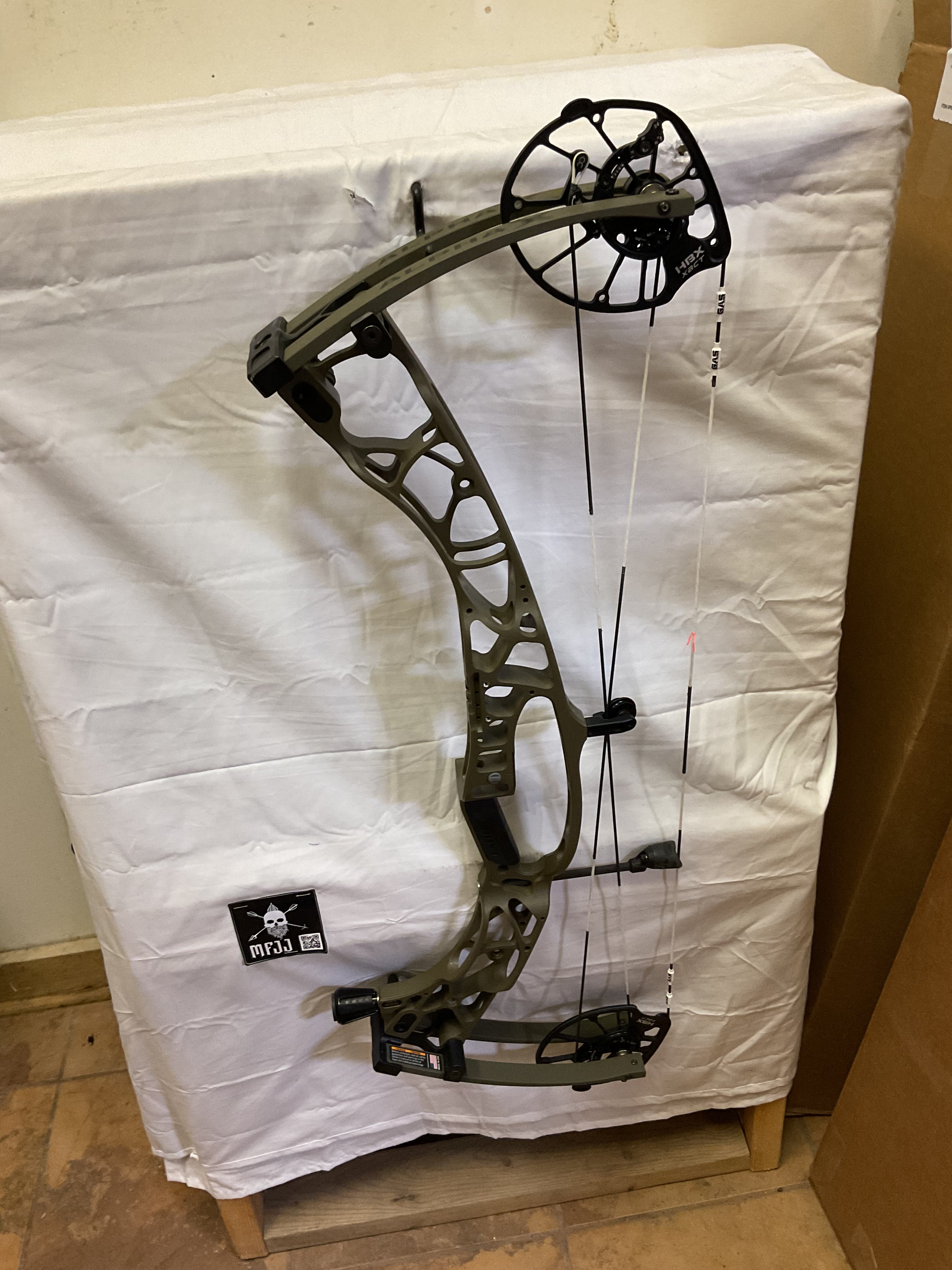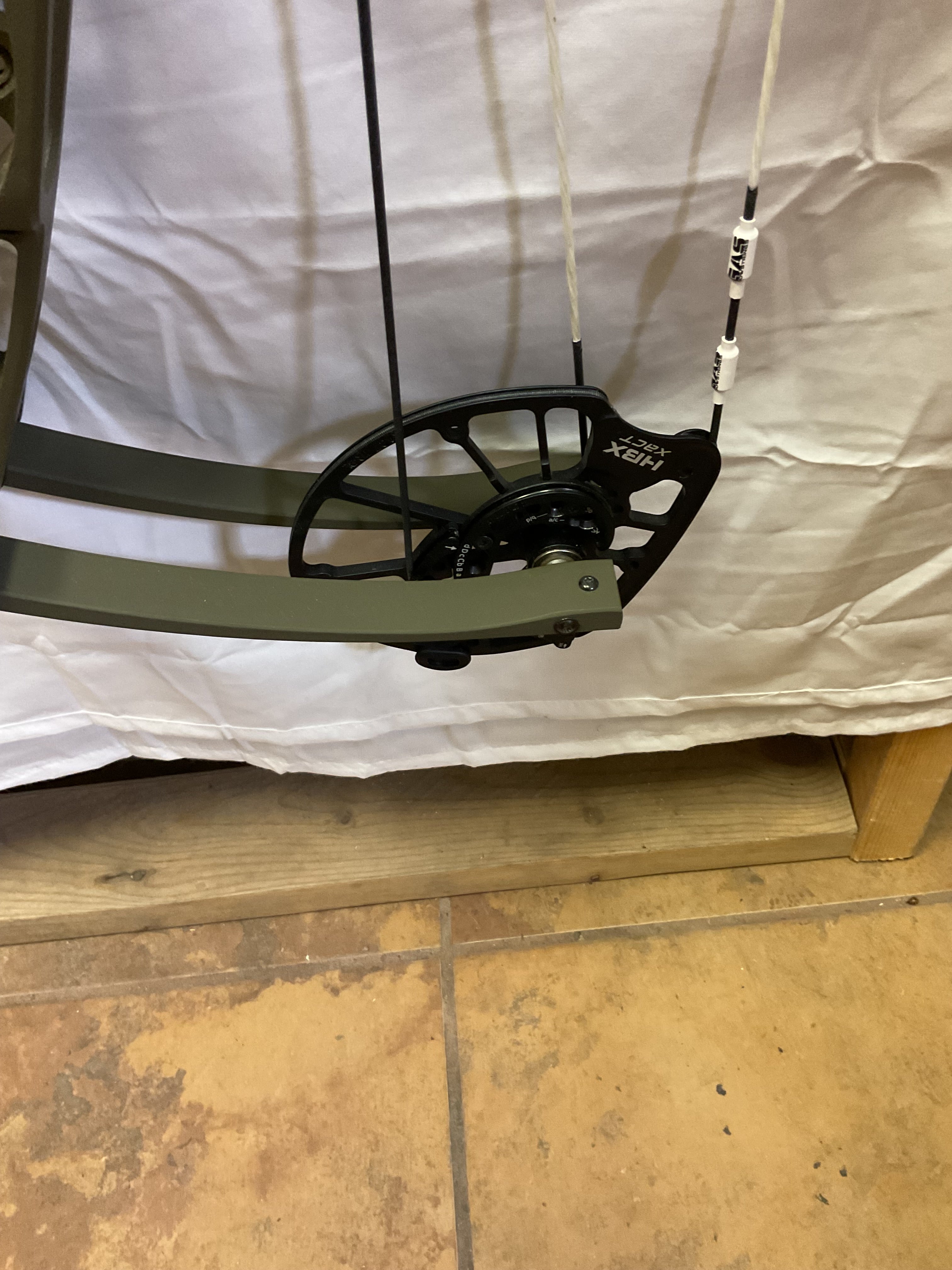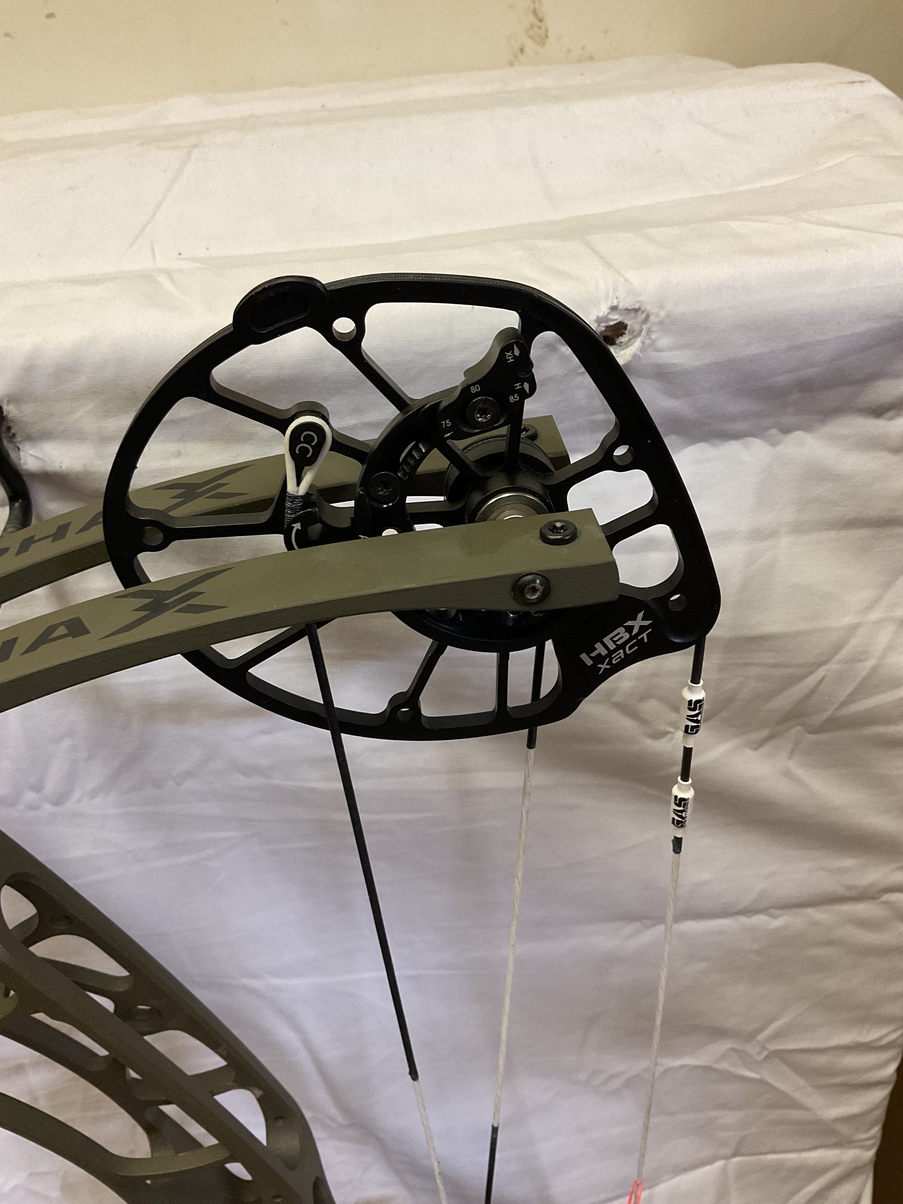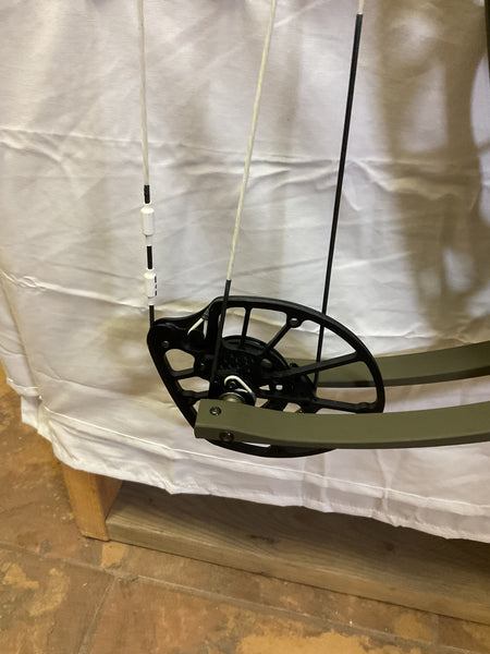 This bow has brand new Gas strings installed and timed by our techs. The bow is in Good condition all around. Has a few paint flakes on the riser but all are 100% cosmetic.