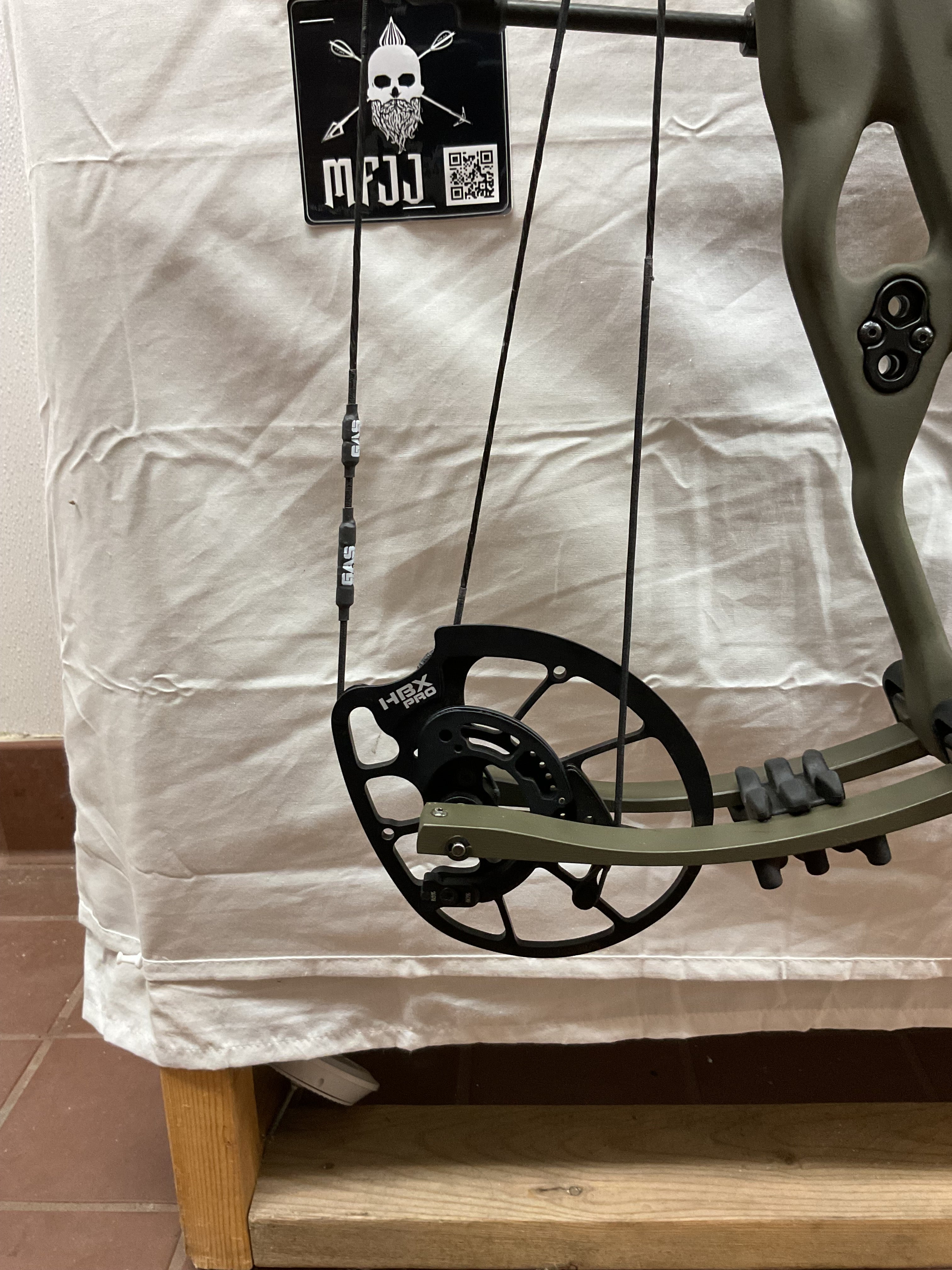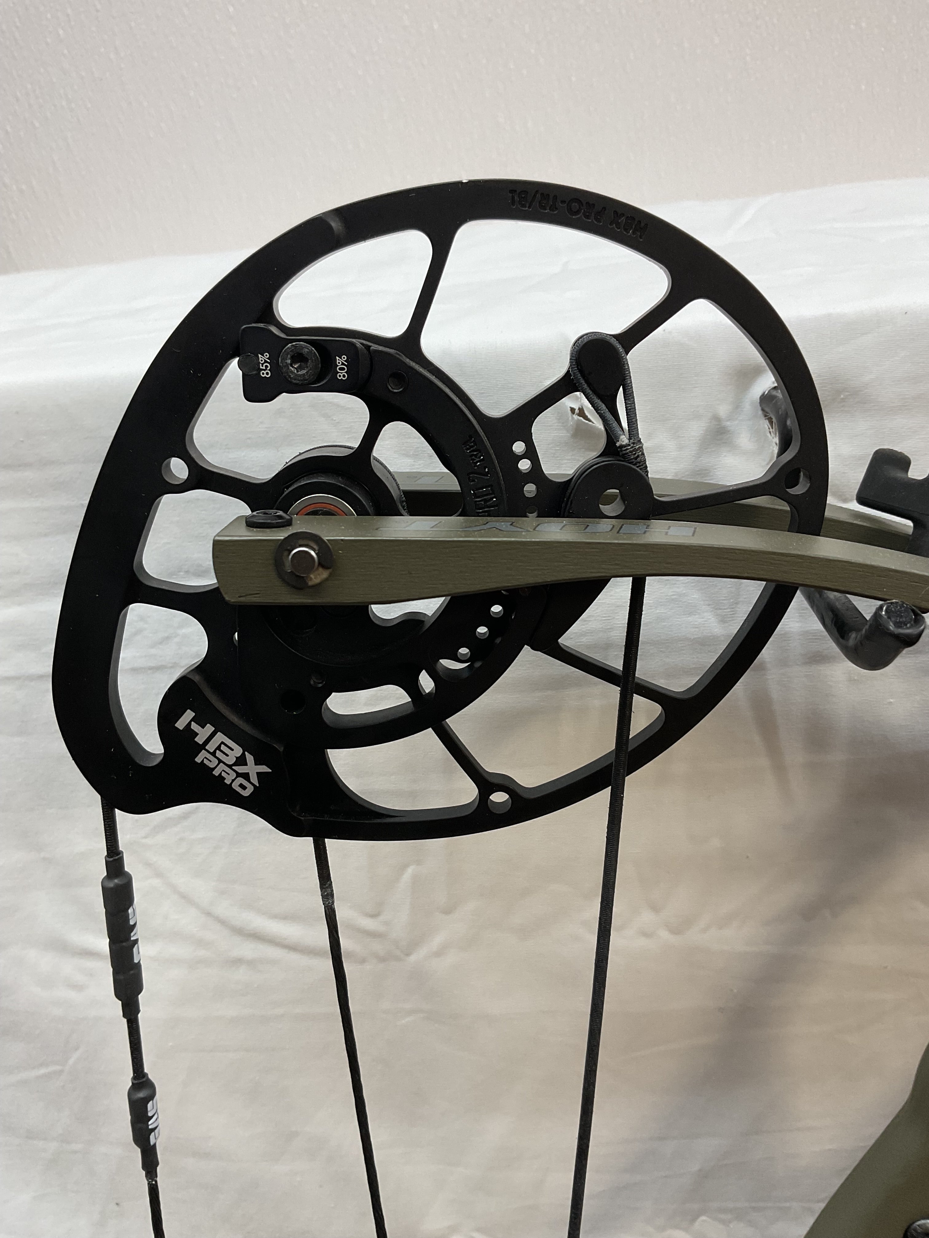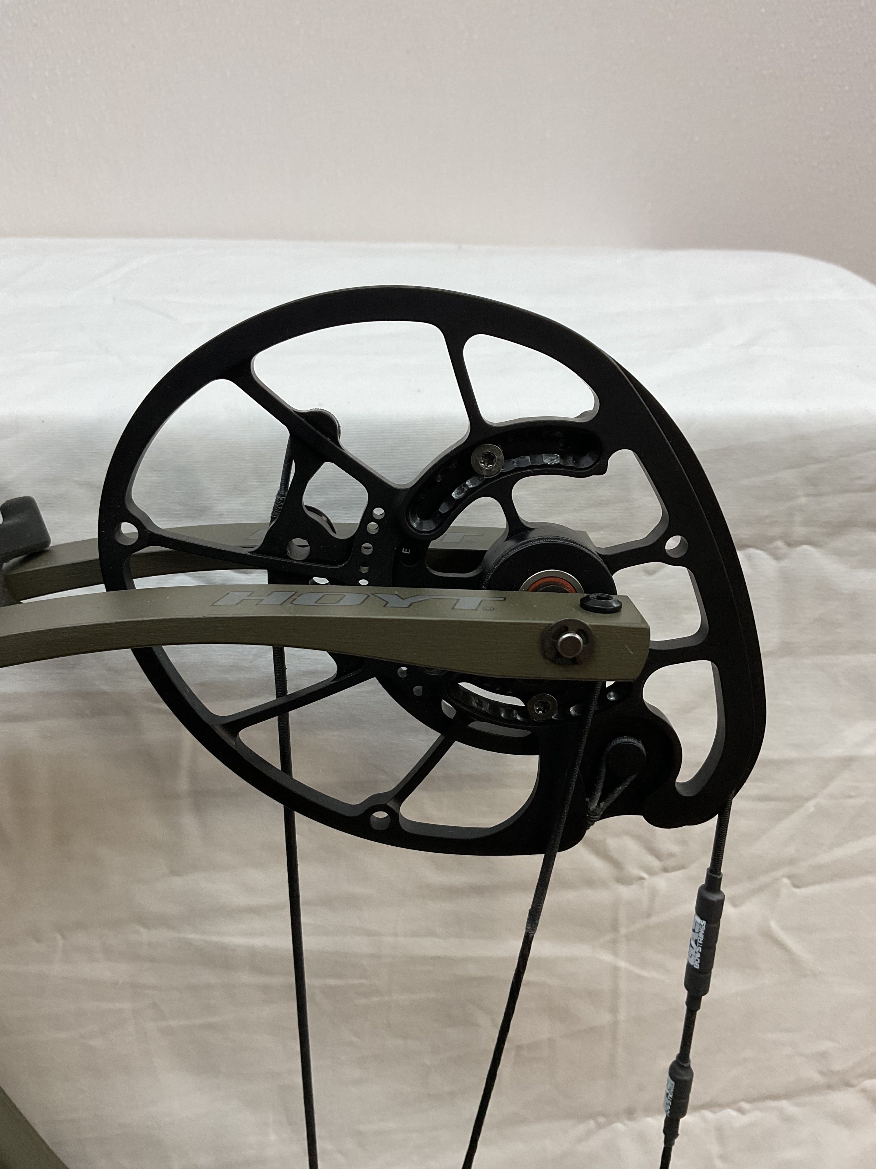 This bow has brand new Gas strings installed and timed by our techs. The bow is in Good condition cosmetically, perfect functional condition.
