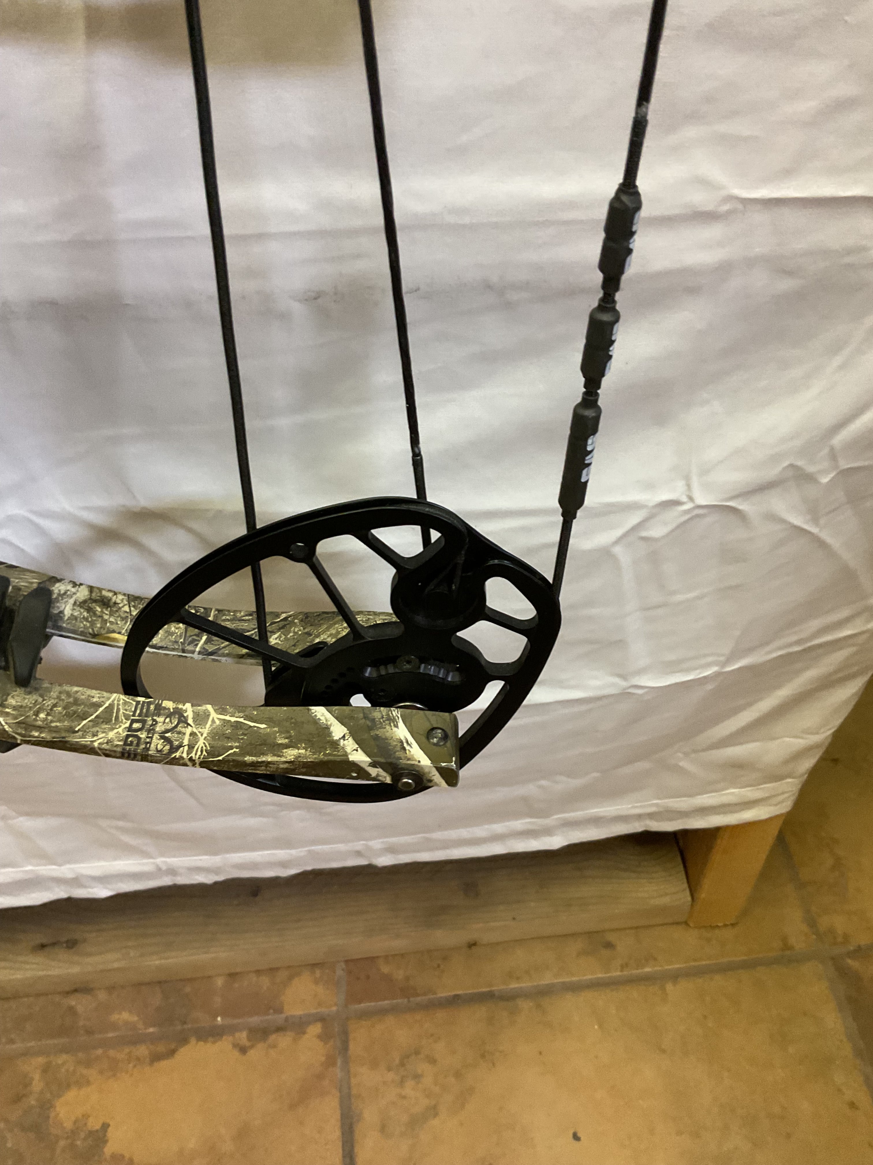 This bow is in great shape. Mechanically this bow is 100% and has new GAS strings installed. There is a paint chip on the self.