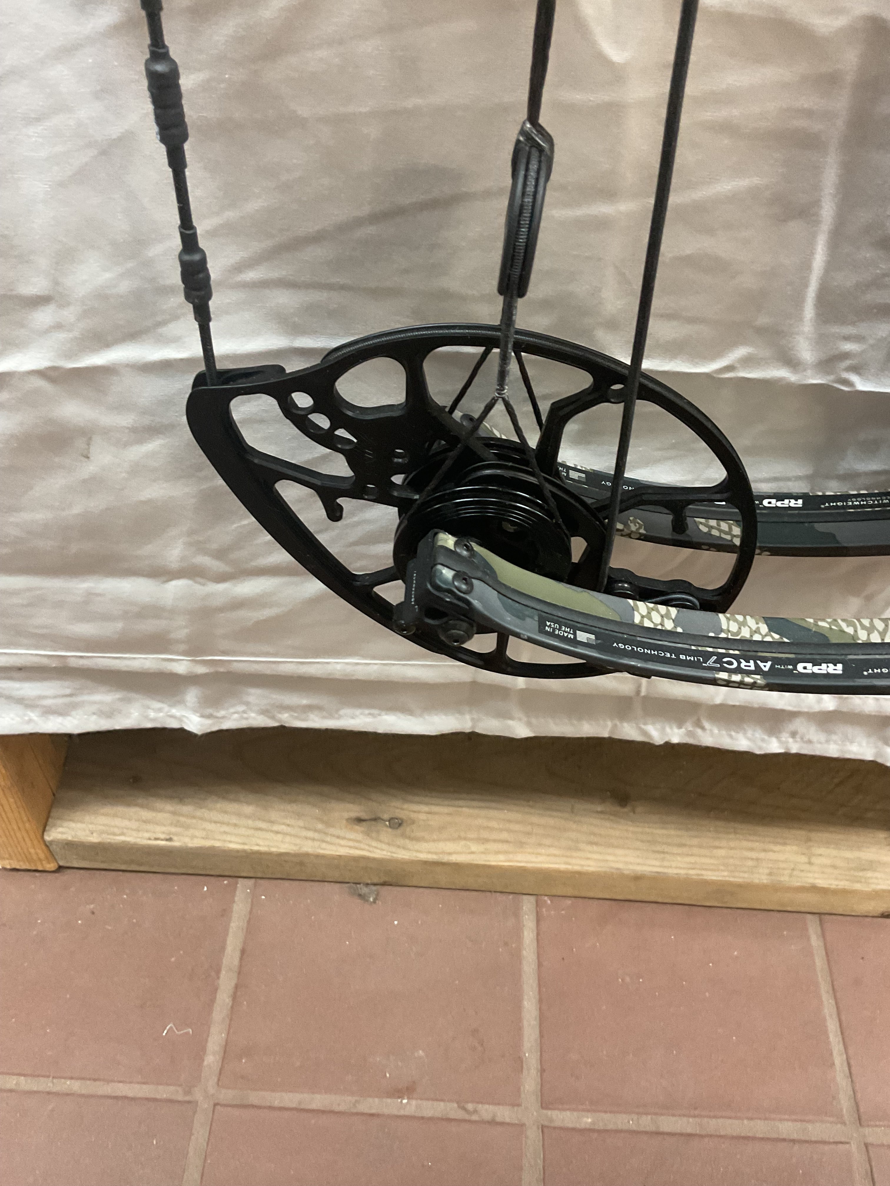 This bow is in Good condition, with Match strings installed and timed. Comes with bridge lock set screw. Has a few nicks on bottom cam.