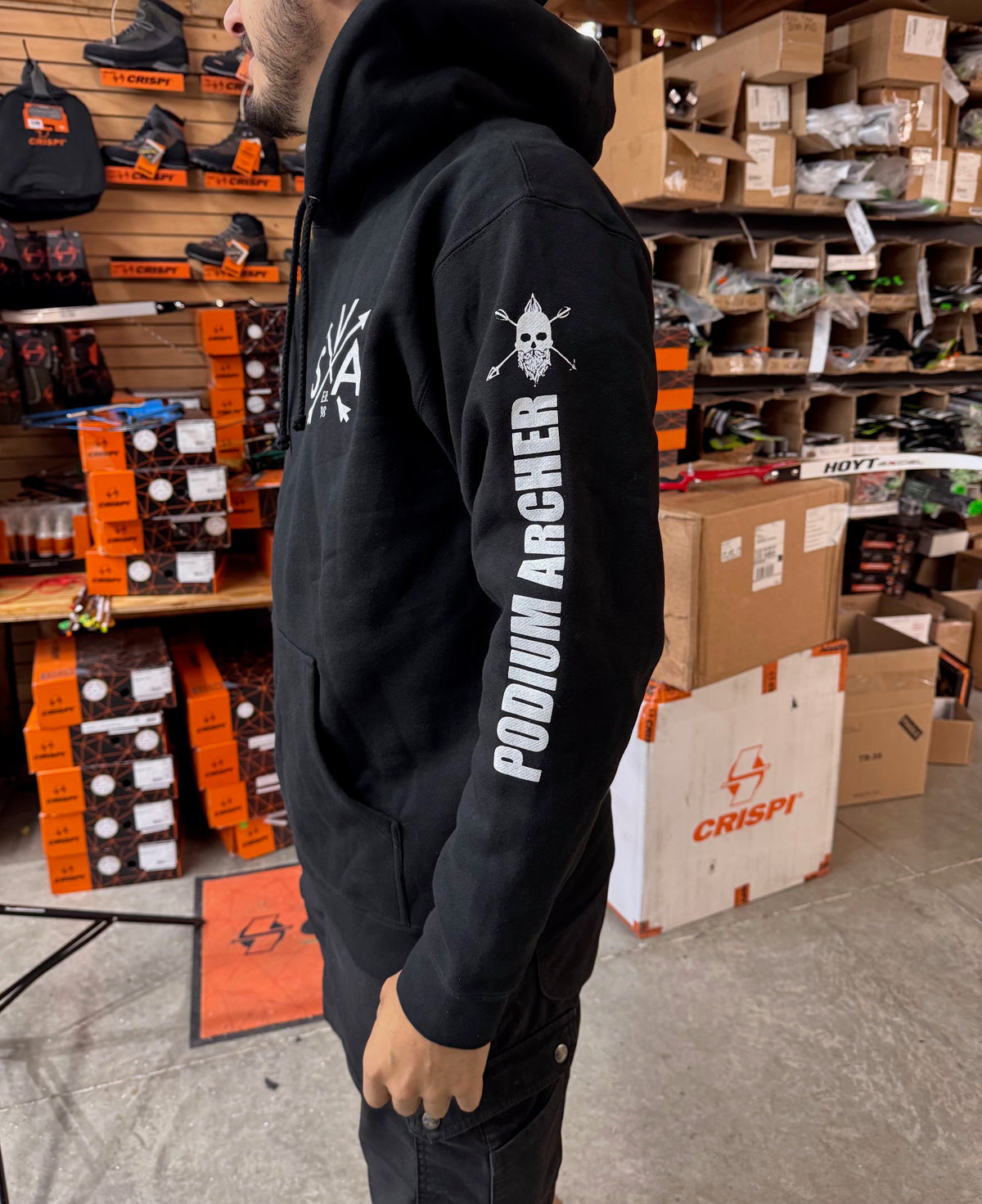 Comfy Podium Archery Sweatshirt featuring our  logos on front back and sleeve.
